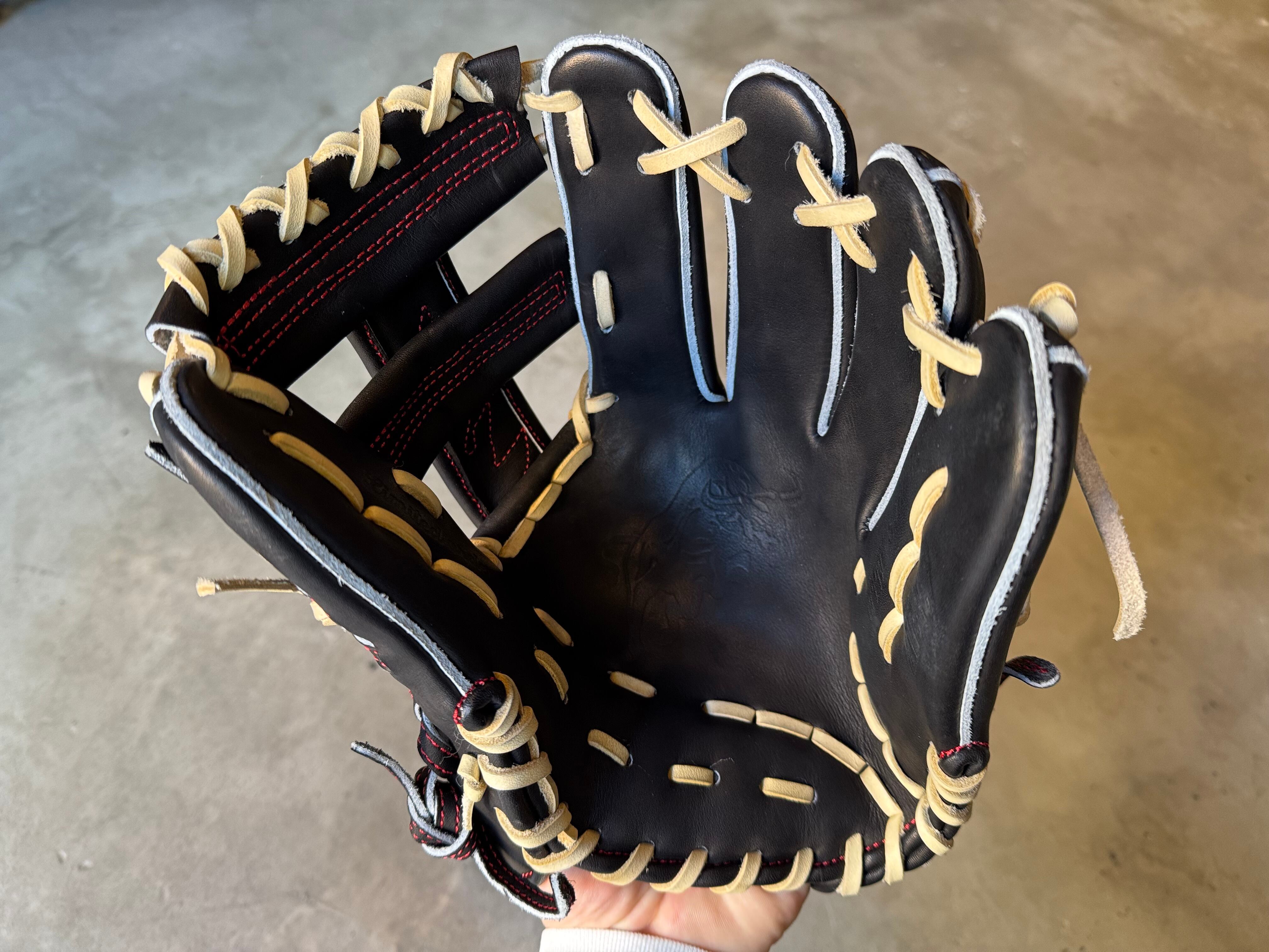 型番:MIE-L TEPPEN人気の内野手用[MIE-L]約28.0cm。 クロスウェブで逆シングルも◎ ポジション:内野手 本体カラー:ブラック ヒラウラカラー:Dオレンジ ヒモカラー:ブロンド ステッチカラー:レッド ラベル:ゴールド×ブラック 専用グラブ袋:有 ボーイズ・ヤング・高校野球使用:可 TEPPENはじめ氏『至極仕上げ』 TEPPENのグラブは、はじめ氏が魂を込めて形を整えて店舗に入荷してくる。 質感、手馴染みの良さも健在のTEPPENレザーも相まって良いグラブに仕上がってます。 ⭐︎自分だけのTEPPENグローブを作ろう! こちらのECサイトでは、TEPPENグローブのオーダーも受付可能です。 納期は2ヶ月半〜3ヶ月ほど。 お気軽にご相談下さい。 ※送料無料 ※型付け有の場合、加工期間に1週間程度かかる可能性がございます。予めご了承下さい。 追加で確認する事項がありましたらメールにてご連絡する事がございます。 ※柔らかさの目安(個人差はございます) 「硬め」・・・形を整える程度。お客様ご自身で柔らかくしていくイメージ。 「普通」・・・キャッチボールが出来る程度。多少の開閉ができるイメージ。 「柔らかめ」・・・ノックなど受けれる程度。しっかり開閉できるイメージ。 ※グラブ刺繍は、平裏土手部のみ可能。ご利用の際はグラブ刺繍ページをご確認下さい。 (メニューバー→カテゴリ→グラブ刺繍)