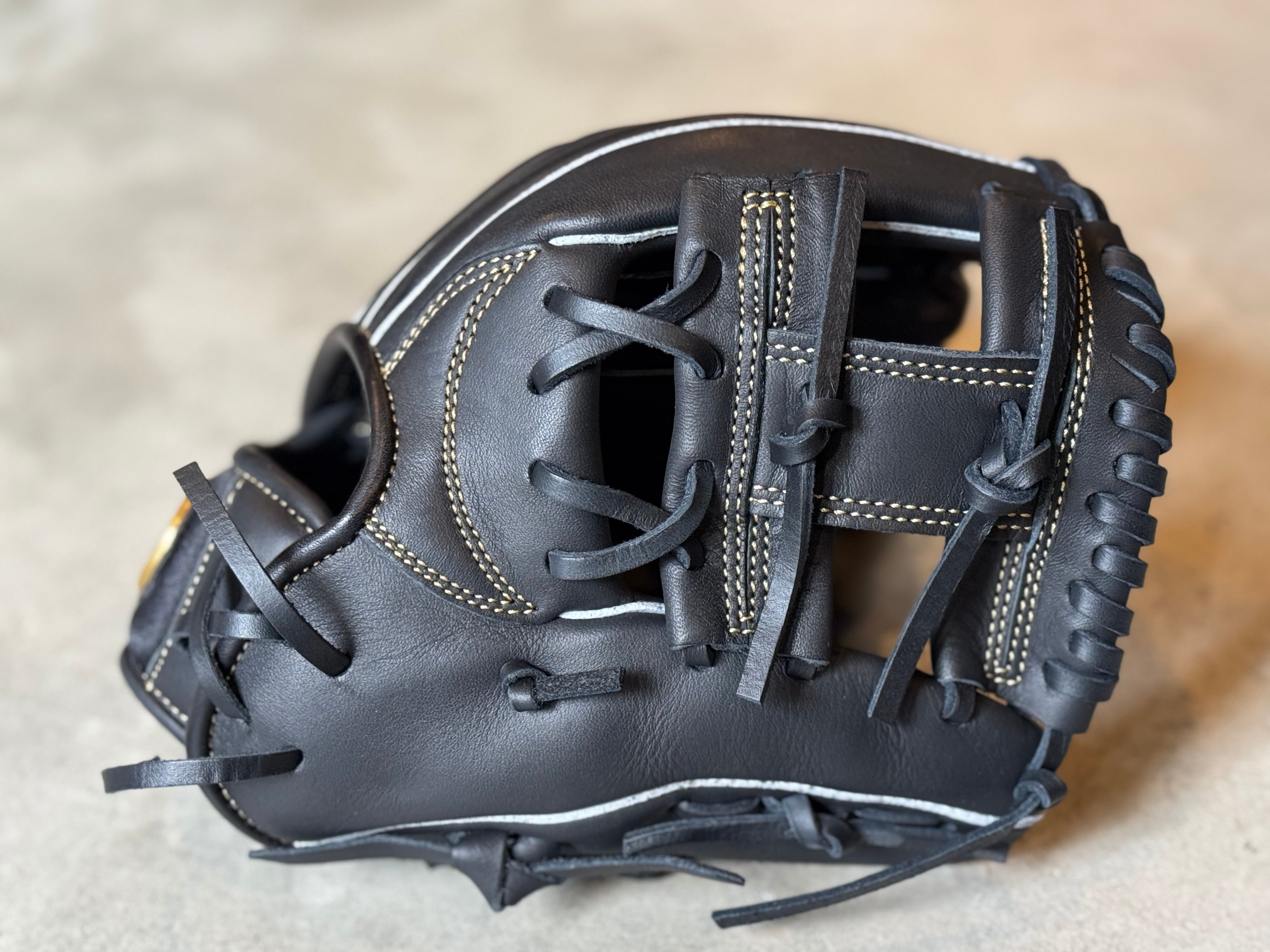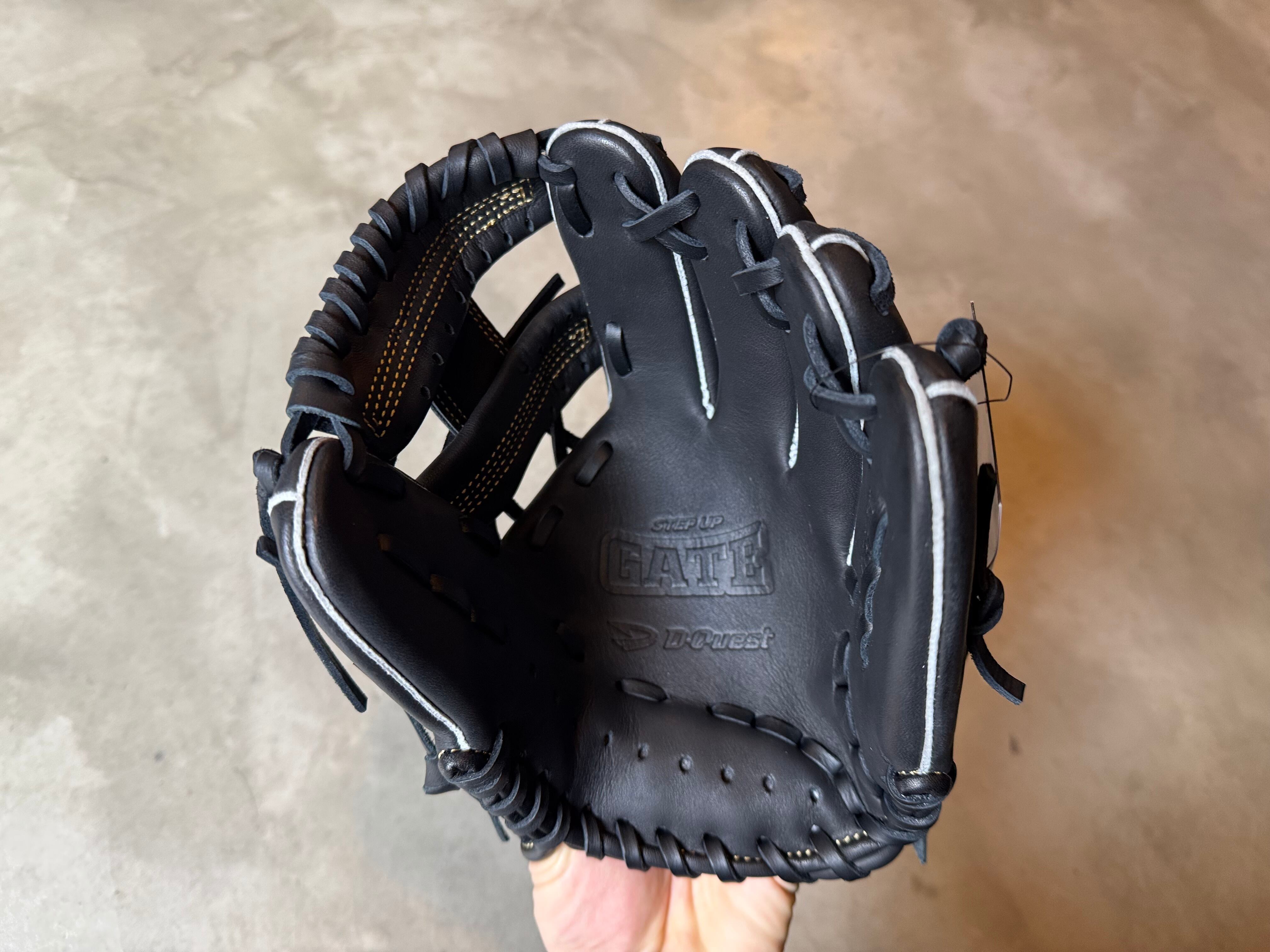 〜小学生の方ににオススメ〜 ※握力の弱い方にも、当店自慢の型付けでしっかり使って頂ける状態でお渡し出来ます! 型番:FRJ-26I ポジション:オールラウンド(約26.0cm) 本体カラー:ブラック 紐カラー:ブラック ステッチカラー:ゴールド ラベル:ブルー×ゴールド ~STEP UP GATEシリーズ~ 野球がたのしくなってきた少年少女のために、「ボールを捕って投げる」それだけを追求し開発されたモデル。 捕球の際、お子様は多くの判断を行います。 その瞬間、グラブの正しい位置でボールを受けられるように、 意識せずに体の一部として作用するように、 色々な状況にも対応できるプレーの基礎が身につくように、知識を詰め込んだグラブ。 STEP UP GATEは、もっと野球が好きになるグラブ。 まだ握力の弱いお子様の手に早く馴染み、いつもそばにいる相棒としてプレーを支えます。 最高のワンアウトをつかむために。 ⭐︎ポイント ①手に馴染み捕りやすい! 表の皮革には、人工の補強材を採用。長く使用してもポケットの浮きが気にならず安心して掴む事ができ、指又部分が破れにくくなっている。 ②開閉が楽で捕りやすい! 新開発のFlexWEBは、WEB外側の先部分に折れ易いようにスリットを入れ、さらに紐通しの高さをあえて揃えずに高さを変えることで握る角度に応じて掴みやすい形状になっています。 握力が弱い小学生でも、使用初期段階から手に馴染み。グラブの動きによってプレーを妨げることのないように考えている。 ③捕りやすいから投げやすい! WEB(網の部分)でボールを捕る癖がつくと、ボールを捕った後、投げるまでの動作の動きが悪くなるので、ゴロ捕球が上達しにくいと言われている。GATEは手のひら全体で捕球出来るように、少し深めのポケット位置にすることで面の浮きを抑え、しっかりとした位置で捕球できるので、握り方がスムーズになり、送球しやすくなります。 D-Questは世界で活躍する一流選手のグラブをつくる工房。 その職人が編んだグラブで、軽快な捕球と成長をサポートします。 手入れ部をタイトめに作られたモデル。手の小さめの方にもオススメ。 ★D-Flex Band★ バンド部にウエットスーツにも使われる素材を採用。柔軟性と伸縮性があるので、手首付近がフィットします。同時に、捕球面の浮きが軽減するので閉じやすくなり、ボールを弾きにくくなります。 ※型付け有の場合、加工期間に1週間程度かかる可能性がございます。予めご了承下さい。 追加で確認する事項がありましたらメールにてご連絡する事がございます。 ※柔らかさの目安(個人差はございます) 「硬め」・・・形を整える程度。お客様ご自身で柔らかくしていくイメージ。 「普通」・・・キャッチボールが出来る程度。多少の開閉ができるイメージ。 「柔らかめ」・・・ノックなど受けれる程度。しっかり開閉できるイメージ。 ※グラブ刺繍は、平裏土手部のみ可能。ご利用の際はグラブ刺繍ページをご確認下さい。 (メニューバー→カテゴリ→グラブ刺繍)